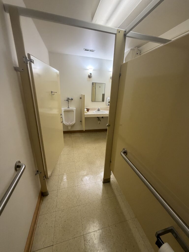 The older portion of the church is not wheelchair accessible, in my estimation. This is the men’s toilet/urinal near the room